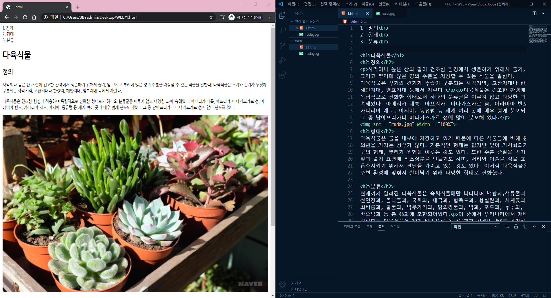 | [생활코딩] WEB1(HTML_04) 최후의 문법 속성과 img (0) | 2020.04.16 |